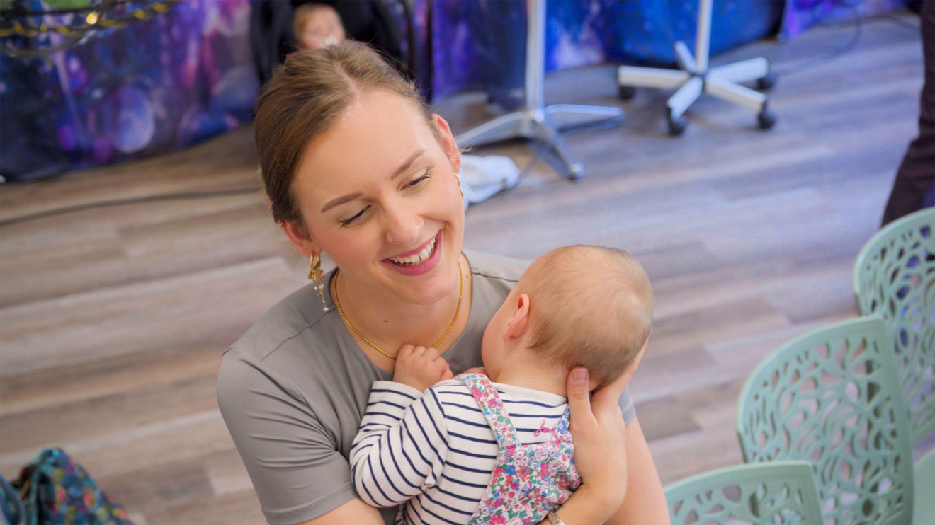 Caroline: Ich bin die Caroline, das ist Katharina. Katharina ist jetzt neun Monate alt und wir waren im Klinikum Bernau für die Geburt.