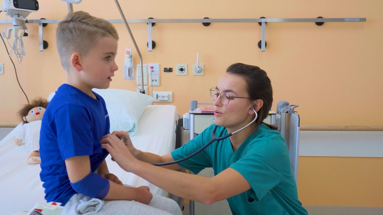 Sarah Wegener: In Bernau ist unsere Pädiatrie tatsächlich nicht so bekannt, weil unser Haus heißt ja Immanuel Klinikum Bernau, Herzzentrum Brandenburg. Das ist aber nicht so, weil wir haben ja eine tolle Pädiatrie, wo auch Kinder jederzeit in die Rettungsstelle kommen können und bei uns hier stationär aufgenommen werden können und hier behandelt werden können. Ich bin Schwester Sarah und bin Gesundheits- und Kinderkrankenpflegerin hier im Immanuel Klinikum Bernau.